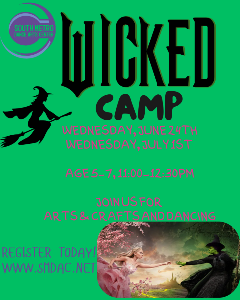 Get ready for a magical and high-energy adventure at our Wicked Camp at South Metro Dance Arts Center! Designed for children ages 5–7, this exciting themed camp brings the magic to life through creative arts and crafts and fun, theatrical dancing.